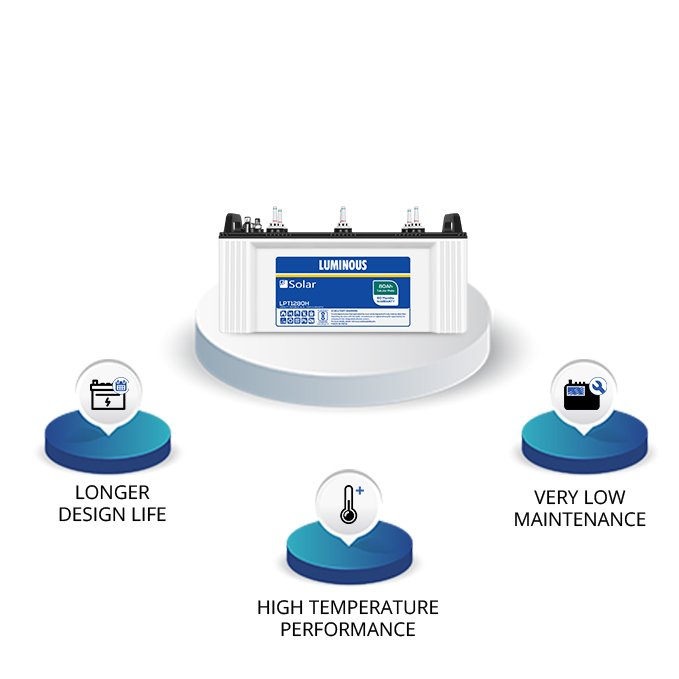 Luminous Solar Batteries are C10 rated deep cycle batteries specially designed for longer back up.
